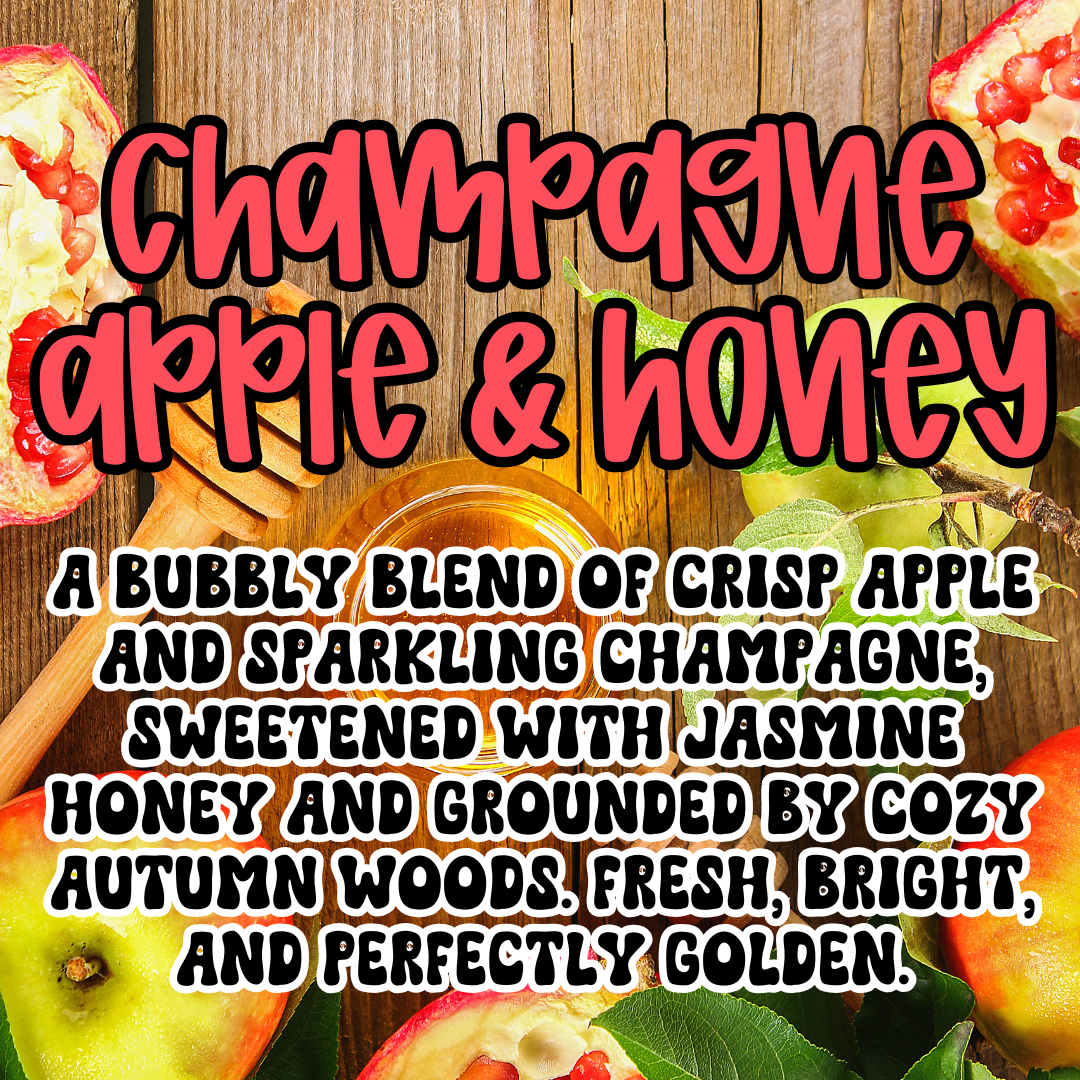 A bubbly blend of crisp apple and sparkling champagne, sweetened with jasmine honey and grounded by cozy autumn woods. Fresh, bright, and perfectly golden.